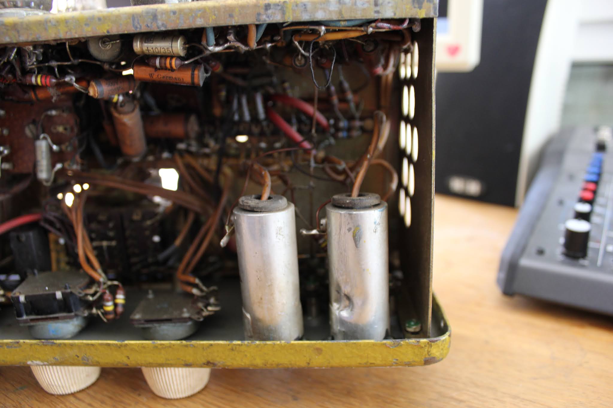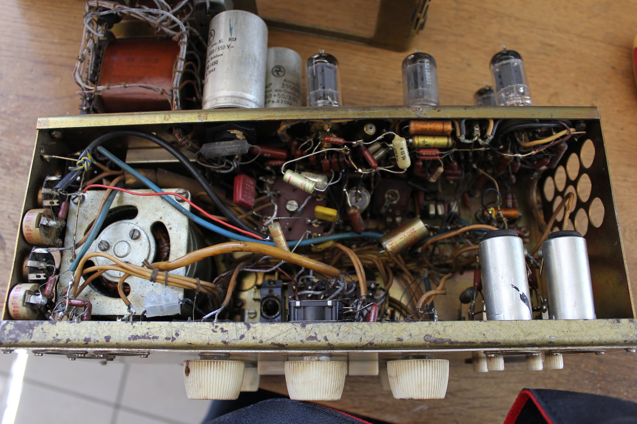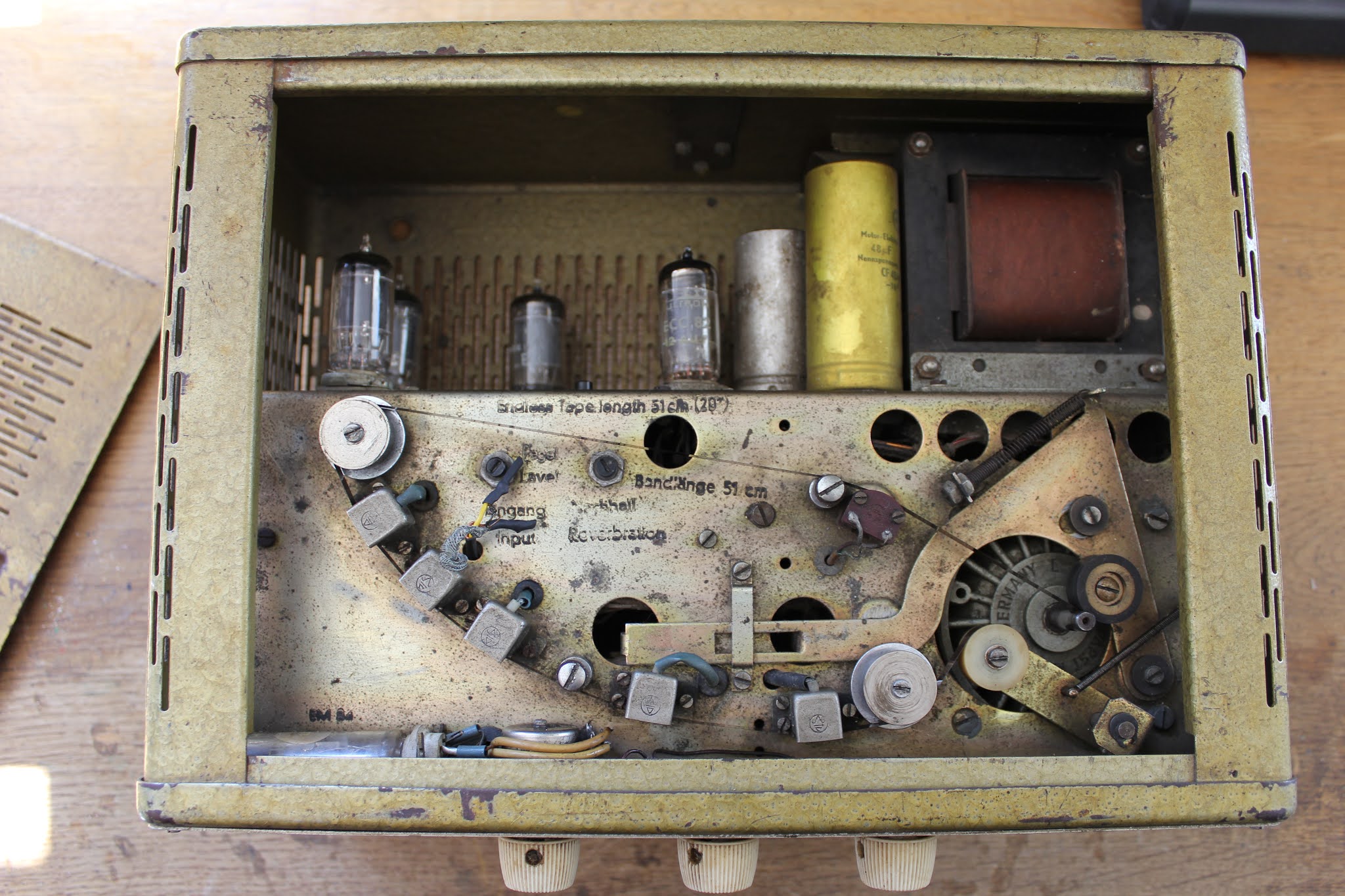 Dies ist bei alten Platinen und Lötstellen sowie besonders in Geräten wie dem Echocord Super 75, in dem ein Federhall eingebaut ist, absolut nicht zuträglich und eine sichere Quelle zukünftiger weiterer Probleme.