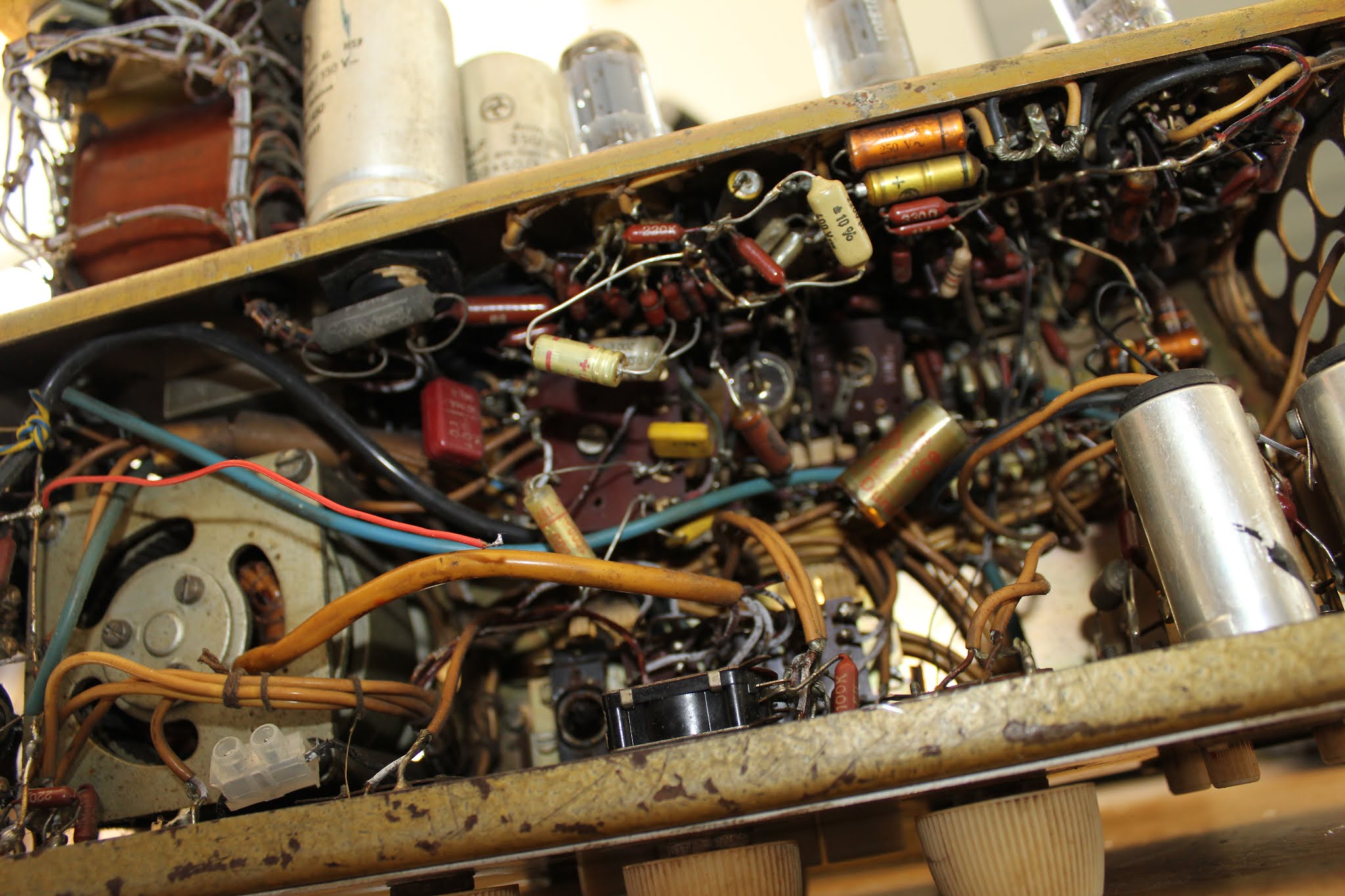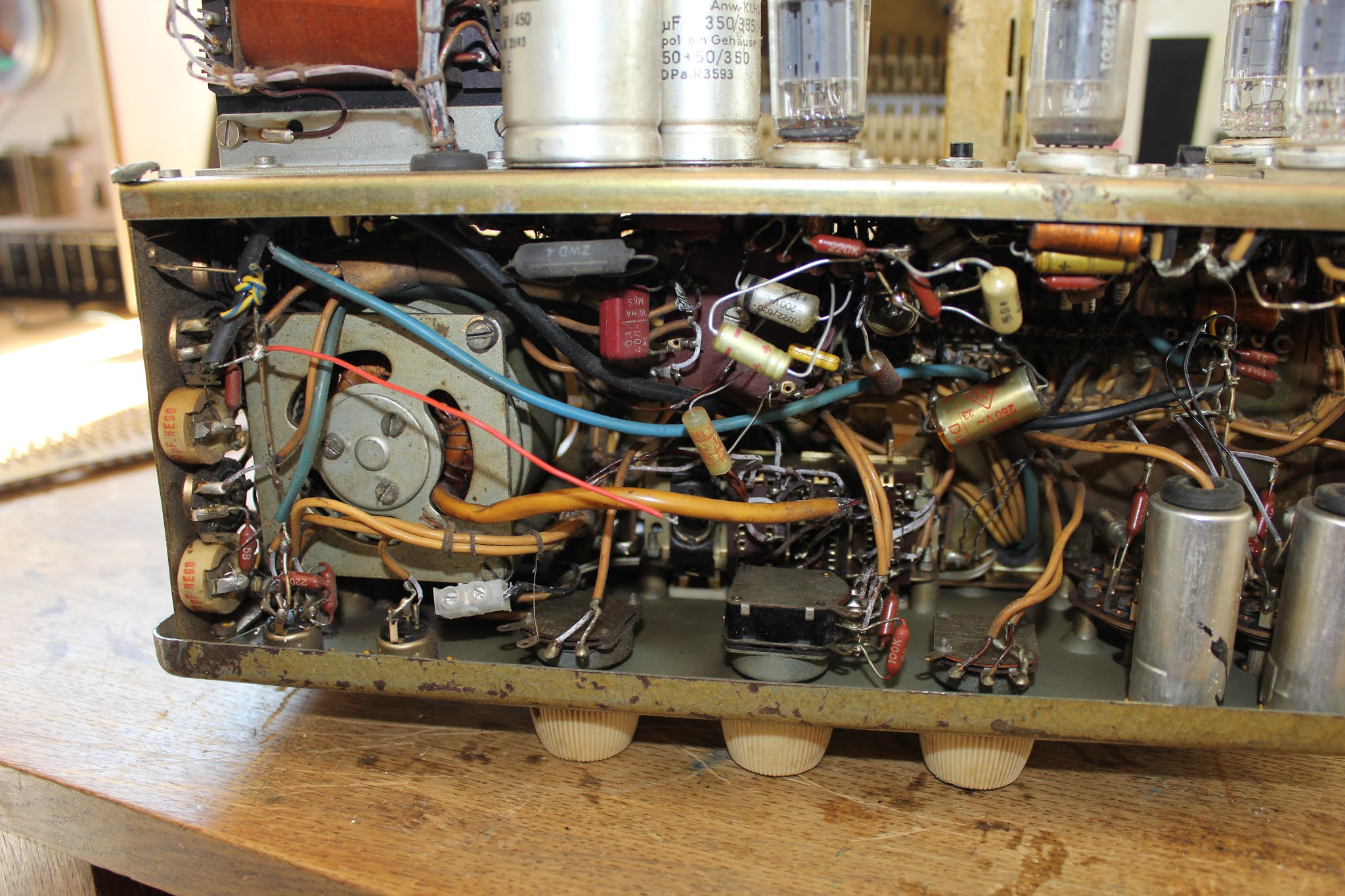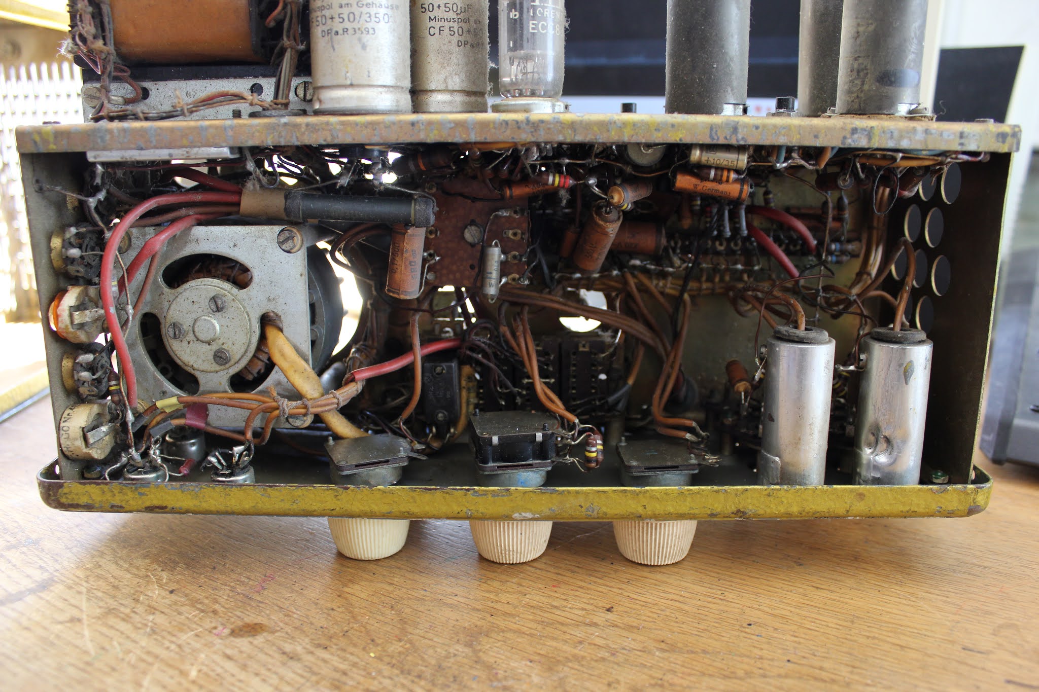 Dies ist bei alten Platinen und Lötstellen sowie besonders in Geräten wie dem Echocord Super 75, in dem ein Federhall eingebaut ist, absolut nicht zuträglich und eine sichere Quelle zukünftiger weiterer Probleme.