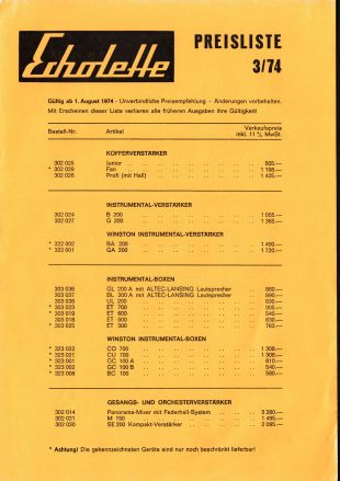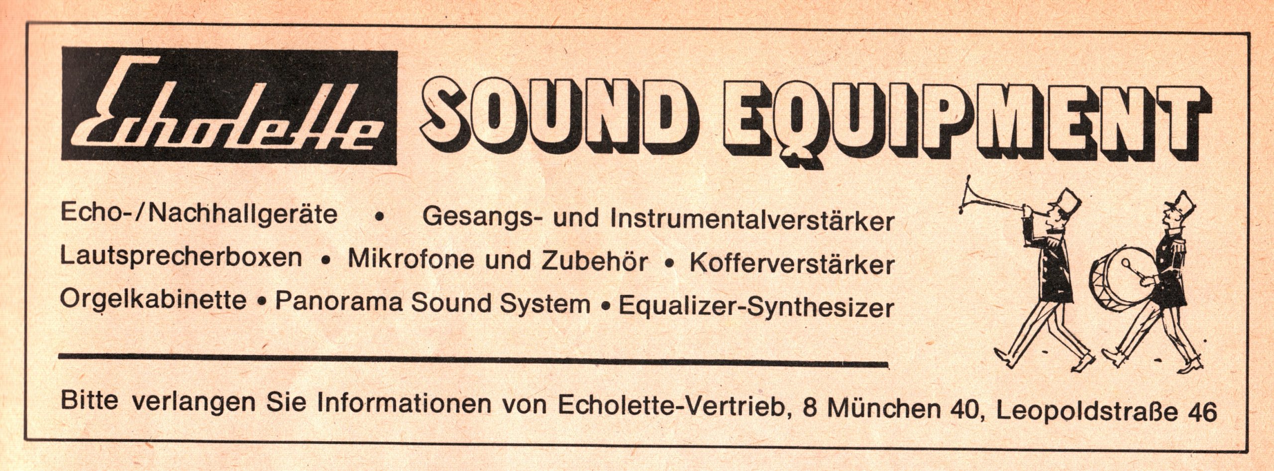 Das Jahr 1966 stand bei Echolette unter dem Beatles Motto! Die Firma stattete die Bravo Beatles Blizttournee in diesem Jahr mit Lautsprechern und einer Gesangsanlage aus: https://www.bravo-beatles-blitztournee.de/
