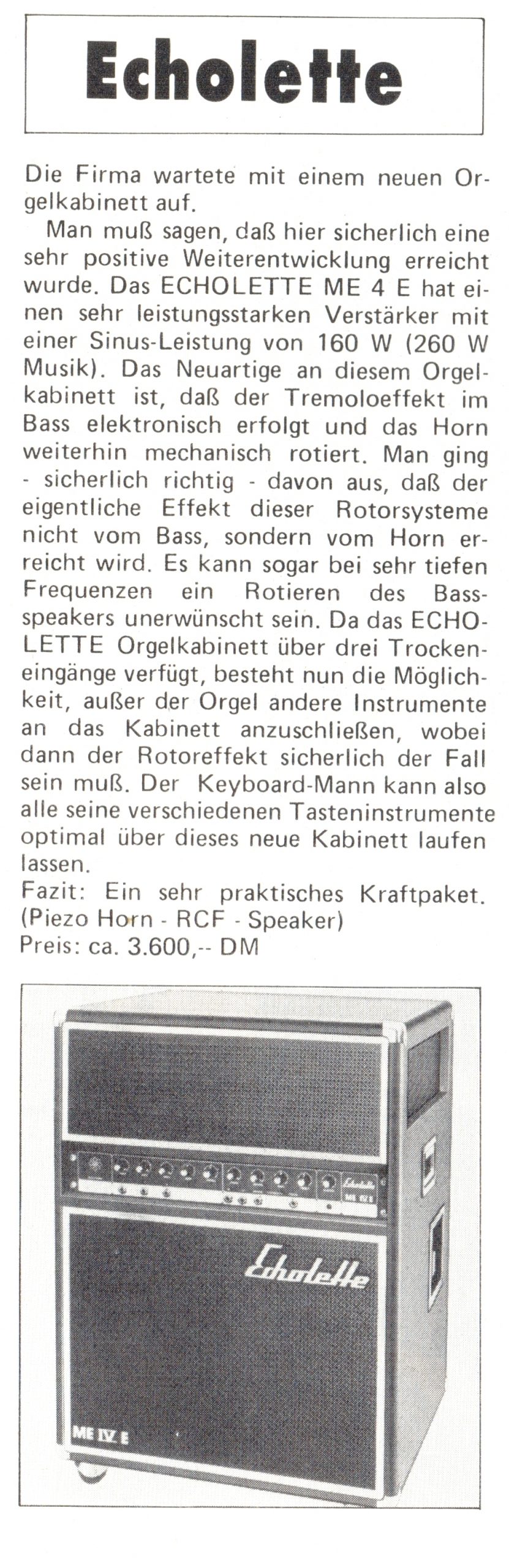 Echolette Werbung, aus: Fachblatt Musikmagazin, Ausgabe 44, 1976.