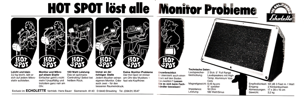 Echolette „Hot Spot“-Werbung (Fachblatt MusicMagazin 1979)