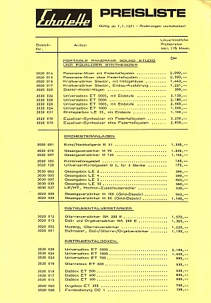 Dezember 1962: Je nachdem, ob man darüber Bass oder Gitarre spielen wollte mit einem anderen Boxen-Angebot: ET1 für die Bassisten und ET2 für die Gitarristen. Ein Konzept, das bei vielen Bassverstärkern der 60er Jahre von Gitarristen dankend angenommen wurde.